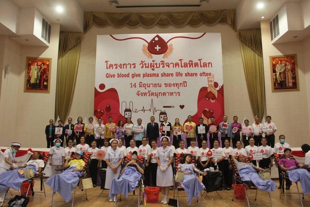 วันที่ 13 มิถุนายน 2568 เวลา 09.30 น. ณ หอประชุม 250 ปี มุกดาหาร จังหวัดมุกดาหาร นายวรญาณ บุญณราช ผู้ว่าราชการจังหวัดมุกดาหาร เป็นประธานพิธีเปิดโครงการวันผู้บริจาคโลหิตโลก ประจำปี 2568 ด้วยเหล่ากาชาดจังหวัดมุกดาหาร ร่วมกับโรงพยาบาลมุกดาหาร ออกหน่วยรับบริจาคโลหิตตามโครงการวันผู้บริจาคโลหิตโลก ประจำปี 2568 เพื่อเป็นการรณรงค์และเสริมสร้างพลังคนรุ่นใหม่ ให้ตระหนักถึงความสำคัญของการเป็นผู้บริจาคโลหิต โดยโลหิตที่ได้จะต้องเป็นโลหิตที่ปลอดภัย และเพียงพอต่อความต้องการของผู้ป่วย รวมทั้งยังเสริมสร้างคนรุ่นใหม่ เป็นผู้บริจาคโลหิตเพิ่มขึ้นได้อีกด้วย
