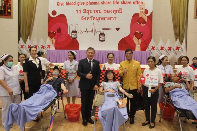 มุกดาหาร -เหล่ากาชาดจังหวัดมุกดาหาร จัดโครงการวันผู้บริจาคโลหิตโลก ประจำปี 2568 รณรงค์และเสริมสร้างพลังคนรุ่นใหม่ ให้ตระหนักถึงความสำคัญของการเป็นผู้บริจาคโลหิต