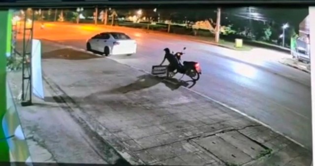 นางศศิธร เปิดเผยกับผู้สื่อข่าวว่าเมื่อวันที่ 11มิ.ย.68ที่ผ่านมา ตนเองกลับบ้านก่อนแล้วให้พนักงานในร้านอยู่ปิดร้าน ในช่วงเกิดเหตุได้ปิดร้านแล้วกำลังจะเดินทางกลับบ้าน ก็สังเกตไปเห็นว่าบันไดที่ใช้ให้รถเหยียบขึ้นร้านหายไป ก็ตกใจรีบโทรศัพท์บอกให้ตนเปิดกล้องวงจรปิดที่ติดตั้งไว้หน้าร้านเพื่อป้องกันโจร ซึ่งพอเปิดกล้องวงจรปิดดูก็เห็นมีคนร้ายขี่รถ จยย.ใส่เสื้อยืดแขนสั้นกางเกงขาสั้น ขี่รถมาจอดหน้าร้านแล้วยกเอาบันไดเหล็กขึ้นรถหลบหนีออกไป