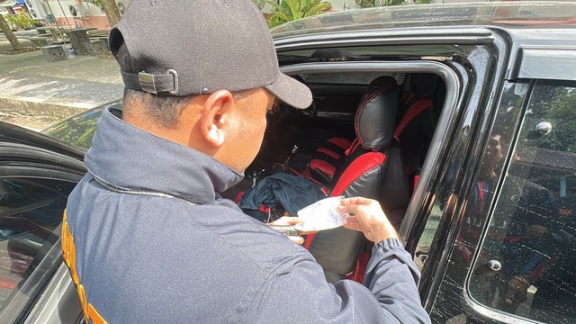 เจ้าหน้าที่ตำรวจได้ตรวจค้นภายในรถ พบของกลาง