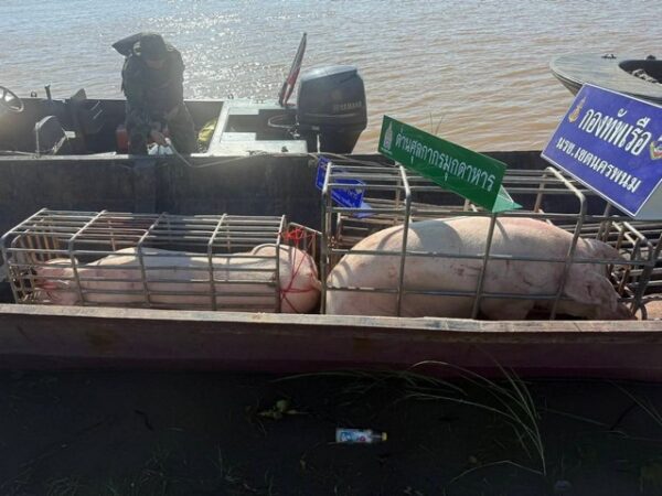 เมื่อวันที่ 17 มิถุนายน 2568 นาวาโท รุ่งเรือง มาสุทธิ หัวหน้าสถานีเรือมุกดาหาร ได้นำกำลังเจ้าหน้าที่ร่วมกับฝ่ายความมั่นคงในพื้นที่ ออกลาดตระเวนบริเวณบ้านหว้านน้อย ต.หว้านใหญ่ อ.หว้านใหญ่ จ.มุกดาหาร กระทั่งเวลา 05.30 น. ตรวจพบเรือเหล็กติดเครื่องยนต์ลำหนึ่ง ล่องมาจากฝั่ง สปป.ลาว เข้าจอดริมตลิ่งแม่น้ำโขง เจ้าหน้าที่จึงได้เข้าตรวจสอบพบชายฉกรรจ์ประมาณ 5 คน กำลังลำเลียงกรงเหล็กบรรจุสุกรมีชีวิต 7 กรง