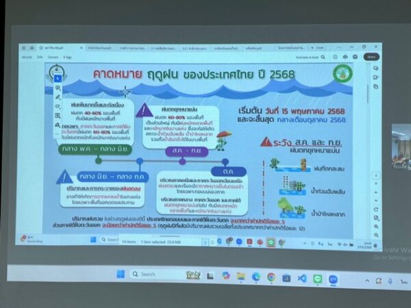 ในการประชุมหน่วยงานต่างๆ ได้นำเสนอการเตรียมความพร้อมรับสถานการณ์อุทกภัยและแนวโน้มสถานการณ์ ประกอบด้วย ภาพรวมการเตรียมความพร้อมรับสถานการณ์อุทกภัยในห้วงฤดูฝน ปี 2568 การติดตามสภาพอากาศและแนวโน้มสถานการณ์