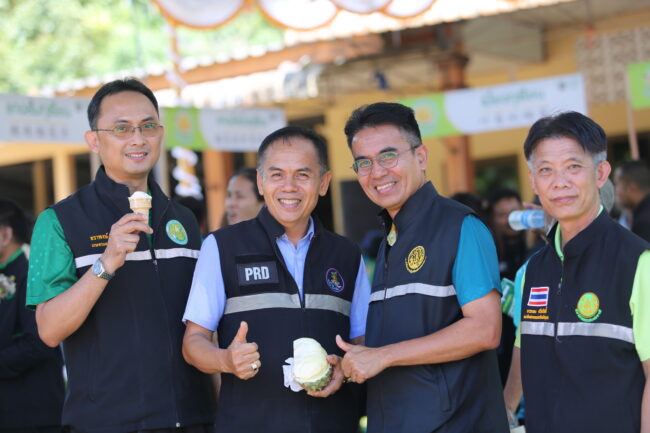 นายเธียรชัย ชูกิตติวิบูลย์ จังหวัดชุมพรถือเป็นแหล่งปลูกทุเรียนคุณภาพที่สำคัญของภาคใต้และของประเทศไทย ด้วยสภาพภูมิประเทศและภูมิอากาศที่เหมาะสม ทำให้ทุเรียนชุมพรมีเอกลักษณ์เฉพาะตัว มีรสชาติหวานมัน เนื้อละเอียด และกลิ่นหอมที่เป็นเอกลักษณ์ ตลอดจนมีการส่งเสริมและพัฒนาคุณภาพผลผลิตทุเรียน มีกระบวนการส่งออกที่รักษาคุณภาพจนถึงผู้บริโภค และมีมาตรการป้องกันควบคุม ป้องกัน แก้ไขปัญหาทุเรียนด้อยคุณภาพ จนได้รับการยอมรับให้เป็นสินค้าเกษตรที่เป็นที่ต้องการของตลาด สร้างรายได้ให้กับเกษตรกร จังหวัดชุมพรจึงได้จัดกิจกรรมวันเปิดฤดูกาลเก็บเกี่ยวผลผลิตทุเรียน ประจำปี 2568 ในครั้งนี้ เป็นการประชาสัมพันธ์ให้นักธุรกิจ ผู้ประกอบการ ตลอดจนนักท่องเที่ยวเดินทางมาจังหวัดชุมพร ได้รับทราบถึงการเริ่มฤดูกาลทุเรียนของจังหวัดชุมพร และเป็นการสร้างมั่นใจให้ผู้บริโภคได้ว่า จังหวัดชุมพรของเราผลิตทุเรียนที่มีคุณภาพ มีรสชาติหวานมัน กรอบอร่อย
