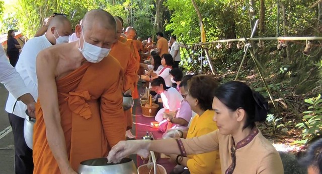 โดยมีพระครูอุดมกิจจานุกูล เจ้าคณะตำบลสาริกาเขต 1 เจ้าอาวาสวัดคีรีวัน เป็นประธานสงฆ์ โดยมีนายธนวัฒน์ ปิ่นแก้ว รองผู้ว่าราชการจังหวัดนครนายก ให้การต้อนรับ พร้อมด้วย นายกองโท อิสรา สุขแจ่มใส ปล้ดจังหวัดนครนายก นายพีระ การุญ นายอำเภอเมืองนครนายก หัวหน้าส่วนราชการ หัวหน้าหน่วยงานรัฐวิสาหกิจ ประชาชน และ ชาวบ้านคีรีวัน เข้าร่วมทำบุญตักบาตรข้าวเหนียว – ข้าวต้มมัด ยลวิถีลาวเวียง