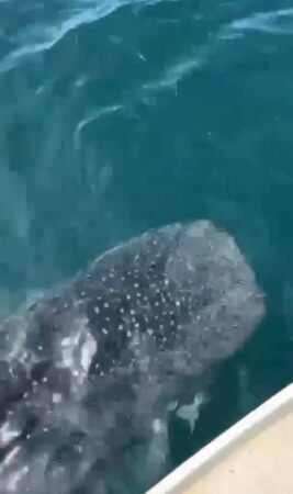 “สายรายงานกลางทะเลเกาะครามใหญ่ บางเสร่ น้องเค้าแวะมาหาแล้วนะ ตัวนี้ 6 เมตรนะคราบ บางเสร่มีอะไรให้ดูอีกเยอะ ตัวเล็กก็มีตัวใหญ่ก็มา”