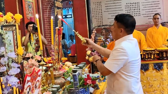 สงขลา-พิธีเวียนเทียนสะเดาะเคราะห์เสริมดวงชะตา ตามประเพณีจีน ในงานสมโภชเจ้าพ่อหลักเมืองสงขลา ครบรอบ 183 ปี