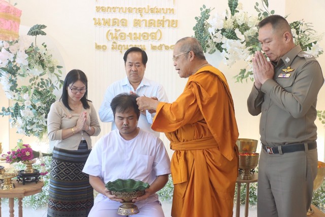 โดยมี พล.ต.ต.พัลลภ แอร่มหล้า รอง.ผบช.น ให้เกียรติเดินทางมาเป็นประธานฝ่ายฆราวาส โกนผมให้นายนพดล ตาดต่าย (นาคมอส) นอกจากนี้ ทางครอบครัวตาดต่ายยังได้รับความเมตตาจากท่าน พระครูโกศลพัฒนากร เจ้าอาวาสวัดโสธรนิมิต เป็นประธานฝ่ายสงฆ์ เทศพระธรรมสอนนาคแก่นาคนพดล ตาดต่าย