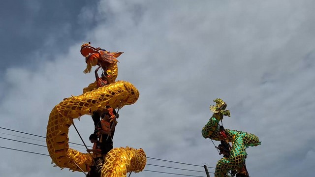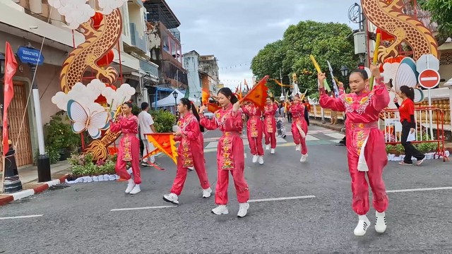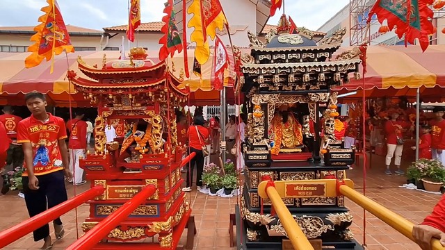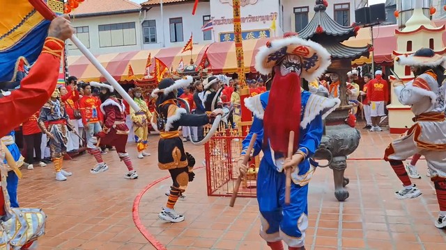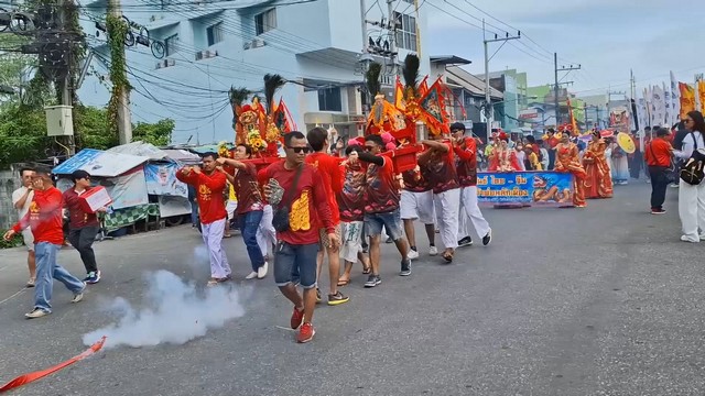 โดยในปีนี้การจัดขบวนแห่พระอย่างยิ่งใหญ่ตระการตามีการนำอังกอ ศาลเจ้าปู่ย่า จังหวัดอุดรธานี ที่มีชื่อเสียงระดับประเทศมาร่วมขบวนแห่และโชว์การแสดงให้ชาวสงขลาได้ชมด้วย รวมทั้งมังกรทองและมังกรมรกต ความยาวกว่า 100 เมตร เข้าร่วมในขบวนและโชว์การปีนเสา พร้อมขบวนธงหลากสีและต้องใช้ผู้เข้าร่วมขบวนทั้งนักเรียน นักศึกษา ทหารเรือ สมาชิกจากองค์กรต่างๆรวมทั้งประชาชนทั่วไปเกือบ 1,000 คน ที่เป็นอาสาสมัครเข้ามาร่วมบุญร่วมกุศลในวันนี้ โดยประชาชนได้ทำการตั้งโต๊ะบูชาหน้าบ้านตนเอง เพื่อความเป็นสิริมงคลให้กับตนเองและครอบครัว เมื่อมีการแบกเกี้ยวเทพเจ้าต่างๆผ่านหน้าบ้านก็จะเข้ามาให้ประชาชนได้กราบไหว้สักการะตลอดเส้นทางที่ขบวนผ่าน