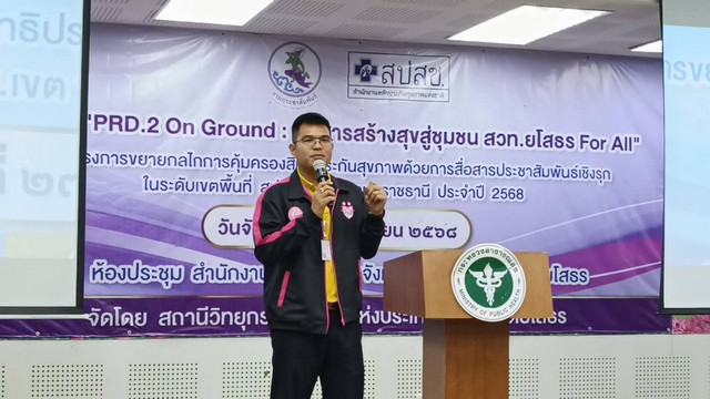 วันนี้ 23 มิ.ย. 2568– สถานีวิทยุกระจายเสียงแห่งประเทศไทย จังหวัดยโสธร (สวท.ยโสธร) สำนักงานประชาสัมพันที่ 2 ร่วมกับ สำนักงานหลักประกันสุขภาพแห่งชาติ เขต 10 อุบลราชธานี จัดกิจกรรม PRD2 OnGround : สื่อสาร สร้างสุข สู่ชุมชน สวท.ยโสธร For All ตามโครงการ “ขยายกลไกการคุ้มครองสิทธิประกันสุขภาพด้วยการสื่อสารประชาสัมพันธ์เชิงรุกระดับพื้นที่” ณ ห้องประชุม1 ชั้น 4 สำนักงานสาธารณสุข จังหวัดยโสธร โดยมีนายชัยวัฒน์ บุญชวลิต ผู้อำนวยการสำนักงานประชาสัมพันธ์ที่ 2 เป็นประธานเปิดกิจกรรม กล่าวรายงานโดย นางวันชนะ บุญปก ดาโรจน์ ผอ.สวท.ยส. และได้รับเกียรติจากท่านบรรจบ แสนสุข รองนายแพทย์สาธารณสุขจังหวัดยโสธร กล่าวต้อนรับ