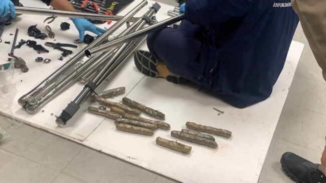 ฝ่ายพิธีการเข้าเมือง ด่าน ตม.ทอ.สุวรรณภูมิ และ กก.สส.ปป.บก.ตม.2 จึงได้ทำการตรวจสอบร่วมกับศุลกากร พบว่า คนต่างชาติรายดังกล่าวคือ Mr.Guntars อายุ 71 ปี สัญชาติลัตเวีย เดินทางมาจากลาวโดยเที่ยวบิน TG571 ถึงสุวรรณภูมิ วันที่ 22 มิ.ย.2568 เวลาประมาณ 15.20 น. เพื่อต่อเครื่องไปมาเลเซียโดยเที่ยวบิน TG417 โดยเครื่องจะออกเวลา 16.40 น. จึงได้ทำการสกัดและตรวจค้นสัมภาระ พบถุงผ้าใบทรงยาวสีแดง ภายในเป็นเปลสนาม และพบวัตถุคล้ายไส้กรอกหุ้มด้วยพลาสติกสีน้ำตาลซุกซ่อนอยู่ในท่อเหล็กแกนของเปลสนาม จำนวนทั้งสิ้น 47 ก้อน ตรวจด้วยน้ำยาพบว่าเป็นเฮโรอีนน้ำหนักรวมประมาณ 3 กก.