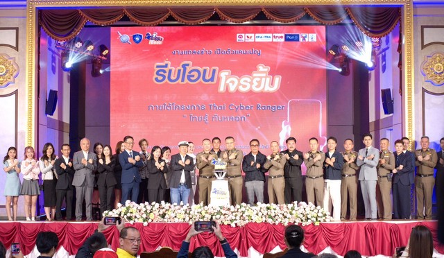 วันนี้ (26 มิถุนายน 2568) เวลา 10.00 น. พล.ต.อ.ธัชชัย ปิตะนีละบุตร จเรตำรวจแห่งชาติ ในฐานะผู้อำนวยการศูนย์ป้องกันปราบปรามอาชญากรรมทางเทคโนโลยีสารสนเทศ สำนักงานตำรวจแห่งชาติ เป็นประธานเปิดโครงการ “Thai Cyber Ranger” แคมเปญ “รีบโอนโจรยิ้ม” ชวนคนไทย “Strike Back” โต้กลับภัยแก๊งคอลเซ็นเตอร์ โดยมี พล.ต.อ.กรไชย คล้ายคลึง รองผู้บัญชาการตำรวจแห่งชาติ , พล.ต.ท.ไตรรงค์ ผิวพรรณ ผู้บัญชาการตำรวจสืบสวนสอบสวนอาชญากรรมทางเทคโนโลยี (ผบช.สอท.) , พล.ต.ต.อรรถสิทธิ์ สุดสงวน รอง ผบช.สอท., พล.ต.ต.วิวัฒน์ คำชำนาญ รอง ผบช.สอท., พล.ต.ต.ทินกร รังมาตร์ รอง ผบช.สอท., พล.ต.ต.ศิริวัฒน์ ดีพอ ผบก.สอท.1 พล.ต.ต.ศิลา กาญจน์รักษ์ ผบก.ตอท. และ พล.ต.ต.สุรพงษ์ ไทยประเสริฐ ผบก.อก.บช.สอท. ร่วมกับ คุณตัน ภาสกรนที กรรมการผู้อำนวยการ บมจ.อิชิตัน กรุ๊ป, รศ.พ.ต.ท.ดร.กฤษณพงค์ พูตระกูล รองอธิการบดี /ประธานกรรมการคณะอาชญาวิทยาและการบริหารงานยุติธรรม มหาวิทยาลัยรังสิต, คุณสถาพร คิ้วสุวรรณสุข ประธานเจ้าหน้าที่ฝ่ายเทคโนโลยี บริษัท ทรูมันนี่ จำกัด และ คุณสุกัณณี เลิศสุขวิบูลย์ หัวหน้าสายงานธุรกิจต่างประเทศและบริการดิจิทัล บมจ.ทรู คอร์ปอเรชั่น , อินฟลูเอนเซอร์ และเจ้าหน้าที่ที่เกี่ยวข้อง ร่วมแถลงข่าว ณ ห้องศรียานนท์ อาคาร 1 สำนักงานตำรวจแห่งชาติ