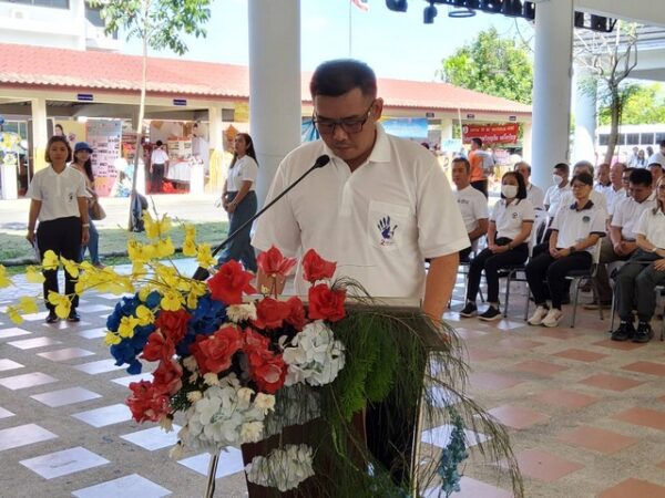นายสรศักดิ์ วจีสัตย์ ปลัดองค์การบริหารส่วนจังหวัด(อบจ.)ลำพูน กล่าวรายงานว่า ปัญหายาเสพติดเป็นปัญหาสำคัญระดับชาติ ที่ต้องได้รับการแก้ไขอย่างเร่งด่วน เพื่อไม่ให้ส่งผลกระทบต่อชีวิตและทรัพย์สินของประชาชน จึงจำเป็นต้องอาศัยความร่วมมือและการมีส่วนร่วมจากทุกภาคส่วนที่เกี่ยวข้องทั้งภาครัฐ ภาคเอกชน และภาคประชาชน ในการรวมพลังแก้ไขปัญหาและต่อต้านยาเสพติด อาทิ ช่วยแจ้งเบาะแส และเฝ้าระวังปัญหายาเสพติดในหมู่บ้าน ชุมชน รวมทั้งเร่งสร้างการรับรู้ให้ประชาชนรู้เท่าทัน เข้าใจสถานการณ์และแนวโน้มของปัญหายาเสพติดในปัจจุบัน ทั้งในมิติการค้า การเสพ และไม่ตกเป็นเหยื่อ ของขบวนการค้ายาเสพติด เป็นต้น