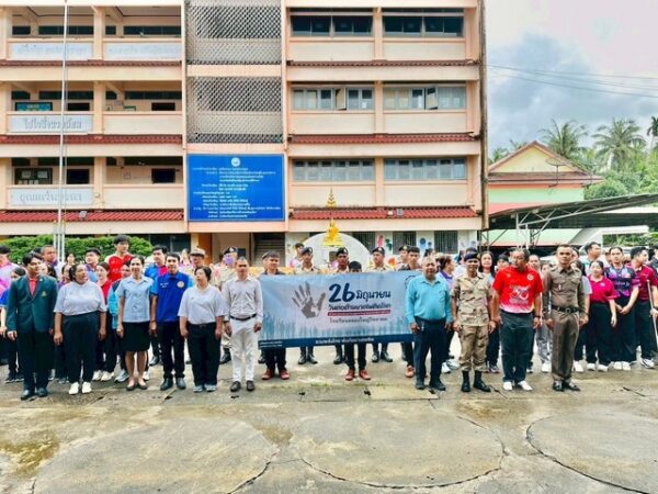 ตราด อ.คลองใหญ่ จัดกิจกรรมวันต่อต้านยาเสพติดโลก มุ่งเน้นสร้างจิตสำนึกและปลูกฝังค่านิยมที่ดีแก่เยาวชน