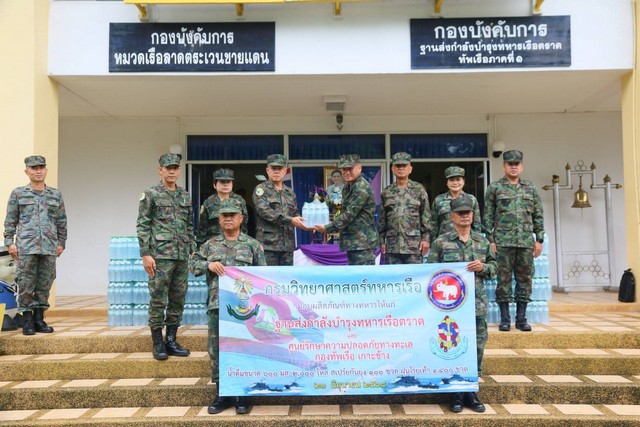 พล.ร.อ.ณัฎฐพล เดี่ยววานิช ผู้บัญชาการกองเรือยุทธการ (ผบ.กร. ) และคณะ พร้อมด้วย พล.ร.ต. วชิรวิชญ์ ขาวคม เจ้ากรมวิทยาศาสตร์ทหารเรือ (จก.วศ.ทร.) และคณะ ปฏิบัติราชการ มชด./1 เข้าร่วมรับฟังการบรรยายสรุปสถานการณ์ในพื้นที่และความพร้อมจาก มชด./1 พร้อมมอบน้ำดื่ม ขนาด 600 มล. จำนวน 2,000 โหล และฝุ่นโรยเท้า จำนวน 1,400 ขวด