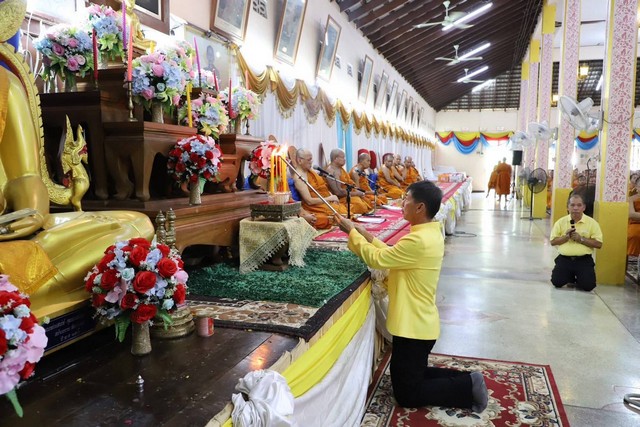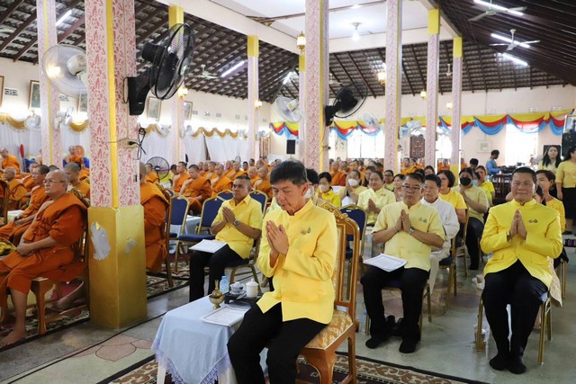 โดยมี พ.อ.กิตติศักดิ์ วัฒนเดช รอง ผอ.รมน.จังหวัดปทุมธานี พลอากาศเอก สักก์สกล แสงสุกรัตน์วดี ที่ปรึกษานายก อบจ.ปทุมธานี หัวหน้าส่วนราชการ ผู้บริหารองค์กรปกครองส่วนท้องถิ่น ข้าราชการ นักเรียนและประชาชน ต่างพร้อมใจสวมใส่เสื้อผ้าโทนสีเหลือง ร่วมพิธี ณ วัดบางพูน อำเภอเมืองปทุมธานี จังหวัดปทุมธานี