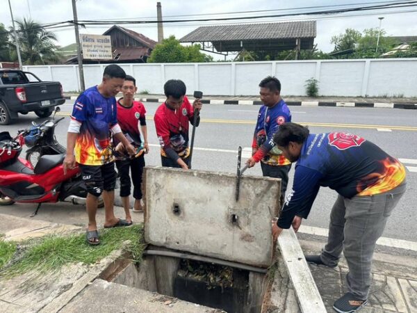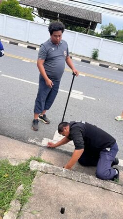 พลเมืองดีเห็นลูกแมวพลัดตกจากรถก่อนวิ่งหนีตายตกท่อระบายน้ำ แจ้งกู้ภัย-เจ้าหน้าที่เทศบาลเมืองนครนายก เร่งช่วยชีวิต