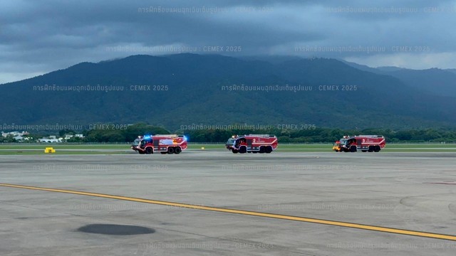 เมื่อช่วงเย็นวันที่ 27 มิถุนายน 2568 นาวาอากาศโท รณกร เฉลิมแสนยากร ผู้อำนวยการท่าอากาศยานเชียงใหม่ เป็นประธานเปิดการฝึกซ้อมเต็มรูปแบบตามแผนฉุกเฉิน ท่าอากาศยานเชียงใหม่ บทที่ 3 กรณีอากาศยานประสบภัยขณะทำการบิน (In-flight Emergencies) ประจำปี 2568 ภายใต้รหัสฝึกซ้อม CEMEX25 โดยมีผู้บริหาร หน่วยงานการแพทย์ทั้งภาครัฐและเอกชน ผู้แทนส่วนราชการ ผู้แทนสายการบิน ผู้ประกอบการ และหน่วยงานต่าง ๆ ที่เกี่ยวข้อง เข้าร่วมฝึกซ้อมและทบทวนขั้นตอนการปฏิบัติอย่างพร้อมเพรียง