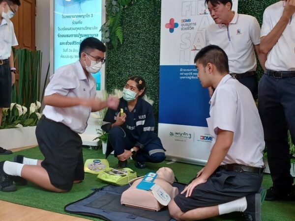 โรงพยาบาลพญาไท 3 ร่วมกับ โรงเรียนสวนกุหลาบวิทยาลัย และคณะศิษย์เก่าสวนกุหลาบ รุ่น 99 จัดอบรมการปฐมพยาบาลและ ช่วยชีวิตขั้นพื้นฐาน (CPR) เพิ่มโอกาสการรอดชีวิต