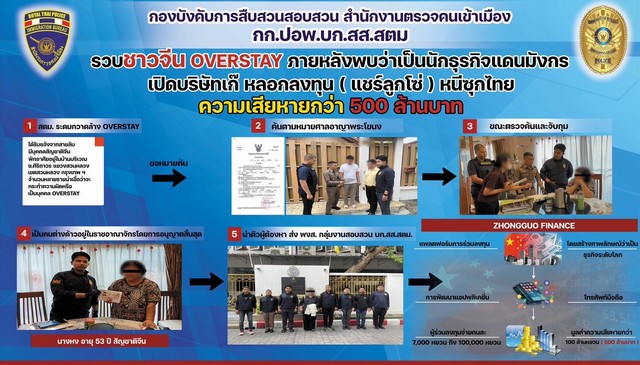 สตม.รวบจีน Overstay ภายหลังพบว่าเป็นนักธุรกิจแดนมังกร เปิดบริษัทเก๊หลอกลงทุน (แชร์ลูกโซ่) หนีซุกไทย ความเสียหาย 500 ล้านบาท