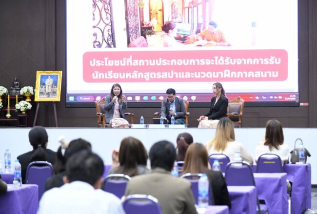 ทพ.อาคม ประดิษฐสุวรรณ รองอธิบดีกรม สบส. เผยว่า ธุรกิจบริการสุขภาพ อาทิ สปา นวดไทย และการดูแลผู้สูงอายุ ถือเป็นอุตสาหกรรมสำคัญที่สร้างรายได้และชื่อเสียงให้ประเทศไทยในระดับเวทีโลก ซึ่งบริการข้างต้นต่างได้รับความนิยมจากทั้งชาวไทยและต่างชาติ ดังนั้น การส่งเสริมให้สถานประกอบการเหล่านี้กลายเป็น “แหล่งฝึกปฏิบัติงาน” จะช่วยเพิ่มคุณภาพและมาตรฐานของบริการ และพัฒนาบุคลากรให้มีทักษะและความรู้ที่ทันสมัย กรม สบส. จึงได้จัดการสัมมนาการพัฒนาศักยภาพสถานประกอบการเพื่อสุขภาพ ในการเป็นแหล่งฝึกภาคสนาม หลักสูตรด้านการบริการเพื่อสุขภาพ ในเขตกรุงเทพมหานครขึ้น เพื่อพัฒนาและยกระดับสถานประกอบการเพื่อสุขภาพให้เป็นแหล่งฝึกปฏิบัติงานภาคสนาม ที่จะช่วยให้ผู้เรียนได้รับประสบการณ์จริง พัฒนาทักษะวิชาชีพ สามารถนำไปใช้ในการปฏิบัติงานจริงได้ และช่วยสร้างบุคลากรที่ตอบโจทย์ตลาดแรงงาน เพื่อป้อนเข้าสู่ตลาดทั้งในและต่างประเทศ