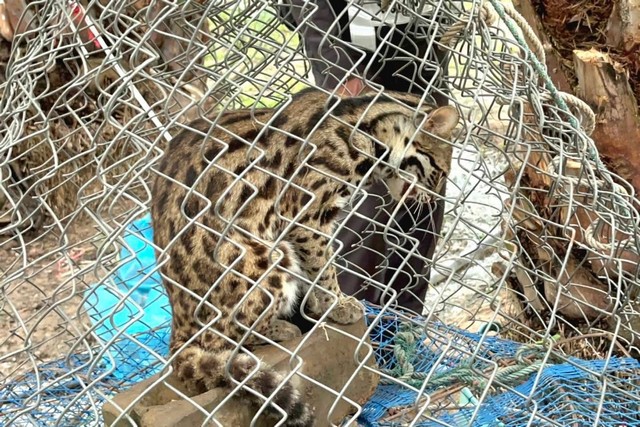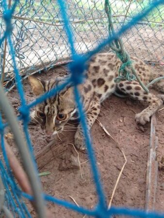 มุกดาหาร -แตกตื่น! คนงานวางบ่วงดักหนู แต่ได้เสือดาวกลางสวนริมโขง มุกดาหาร