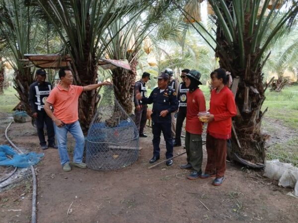 โดยเมื่อเวลาประมาณ 07.30 น.ของวันนี้ คนงานในสวนเดินตรวจรอบสวนแล้วพบสัตว์ขนาดใหญ่คล้ายแมวป่าถูกบ่วงรัดอยู่ ด้วยความตกใจจึงถ่ายภาพส่งให้ผู้จัดการตรวจสอบ ก่อนจะได้รับคำยืนยันว่าเป็น “เสือดาว” ซึ่งเป็นสัตว์ป่าคุ้มครอง