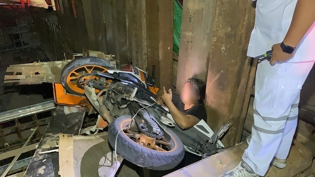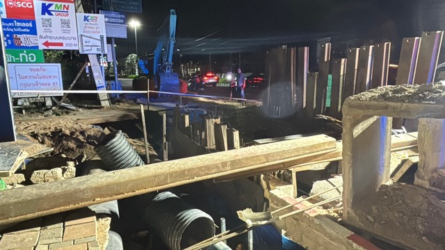 เฉียดตาย ถนนมืด หนุ่มควบจยย.ตกหลุ่มโครงการวางท่อระบายน้ำ วิจารณ์ยับสุดชุ้ยไร้สัญญาณเตือน