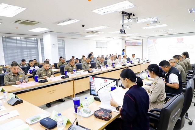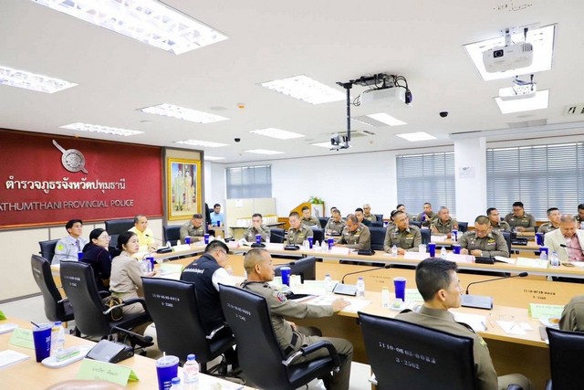 เมื่อวันที่ 4 ก.ค.68 เวลา 15.30 น. นายสมคิด จันทมฤก ผู้ว่าราชการจังหวัดปทุมธานี ประธานการประชุม พร้อมด้วยพล.ต.ต.ยุทธนา จอนขุน ผบก.ภ.จว.ปทุมธานี รองประธานการประชุม นายวันเฉลิม เมตไตรพันธุ์ อัยการจังหวัดปทุมธานี รองประธานการประชุม พ.ต.อ.ตระกูล เกียวประเสริฐ รอง ผบก.ฯ , พ.ต.อ.ธงรบ แจ้งจิต รอง ผบก.ฯ , พ.ต.อ.นิรันดร ฟักสุบัน รอง ผบก.ฯ , พ.ต.อ.วิษณุรักษ์ พรหมเมศร์ รอง ผบก.ฯ ,