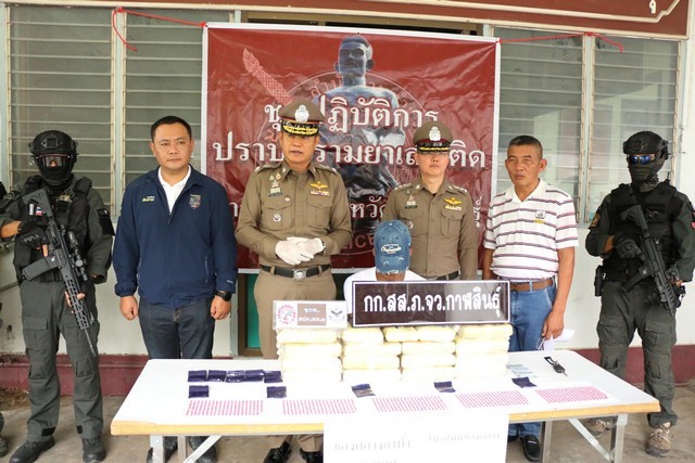 กระทั่งเวลา 01.30 น.วันที่ 5 กรกฎาคม 2568 เจ้าหน้าที่พบรถยนต์เป้าหมายขับมาถึงบริเวณแยกสัญญาณไฟจราจร อ.สมเด็จ มุ่งหน้าไป อ.สหัสขันธ์ – อ.หนองกุงศรี – อ.ห้วยเม็ก เจ้าหน้าที่จึงได้ติดตามรถยนต์คันดังกล่าวในระยะสายตา จนกระทั่งมาถึงบริเวณป่าอ้อยก่อนถึงแยกสัญญาณไฟจราจรฮาร์ดบาร์ ต.ห้วยเม็ก จ.กาฬสินธุ์ เห็นรถยนต์จอดอยู่บริเวณป่าอ้อย พบนายจิรภัทร์ หรือแหล่ พิมหานาม อายุ 29 ปี และเพื่อนที่มาด้วยอีก 1 คน กำลังขนย้ายวัตถุลักษณะคล้ายกระสอบปุ๋ยสีน้ำเงินลงจากรถยนต์คันดังกล่าว เพื่อนำไปซุกซ่อน เจ้าหน้าที่จึงแสดงตัว ทำให้ผู้ต้องหากับพวกทิ้งกระสอบปุ๋ยพยายามวิ่งหลบหนี เจ้าหน้าที่จึงไล่ตามจนสามารถจับตัวนายจิรภัทร์ได้