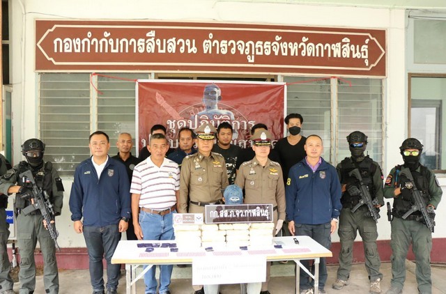 วันที่ 5 กรกฎาคม 2568 ที่หน้ากองกำกับการสืบสวน ภ.จว.กาฬสินธุ์ พล.ต.ต.ศิรสัณห์ เยื้อนสงวนชัย ผบก.ภ.จว.กาฬสินธุ์, พ.ต.อ.นพดล ศรีชะตา รอง ผบก.ภ.จว.กาฬสินธุ์, พ.ต.อ.สมพงศ์ มั่นหมาย รอง ผบก.ภ.จว.กาฬสินธุ์,พ.ต.อ.นพวิทย์ ดิษฐาธนาธรสิริ ผกก.สืบสวน.ภ.จว.กาฬสินธุ์, พ.อ.นิติธร ประพิณ ผกก.สภ.ห้วยเม็ก, พ.อ.กรกิจ ศรีทองกุล ผบ.ขกท.ศปก.ทภ.2 และ พ.ต.ท.คณาพจน์ เลิศศิริ รอง ผกก.กลุ่มงานการข่าว บก.ขส.บช.ปส.
