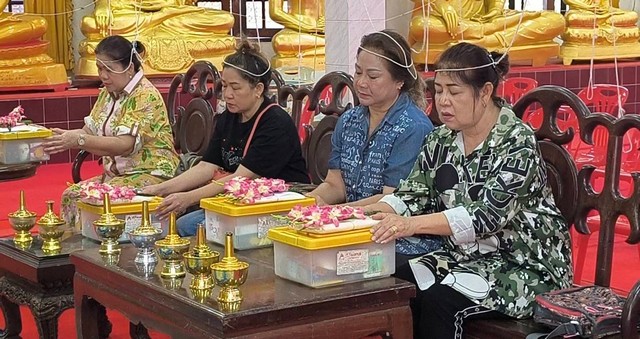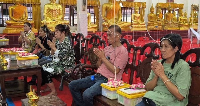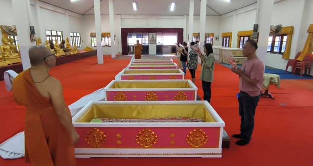 นครนายก – นักท่องเที่ยวให้ความศรัทธาเดินทางเข้าพิธีนอนโลงศพวัดหลวงพ่อปากแดงจังหวัดนครนายก