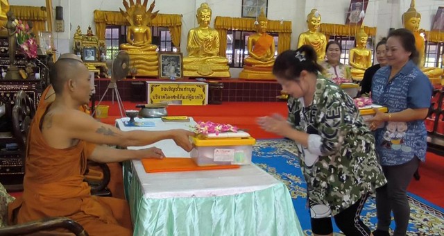 นักท่องเที่ยวให้ความศรัทธาเดินทางมาวัดหลวงพ่อปากแดงเข้าพิธีนอนโลงศพสะเดาะเคราะห์ต่อดวงชะตาชีวิต ฝึกตายก่อนตายจริงฝึกสติให้คิดได้ว่าทุกคนหนีไม่พ้นความตาย พร้อมเจิมหน้าผาก เจิมฝ่ามือ ลงยันต์กระเป๋าสตางค์ ลงยันต์โทรศัพท์