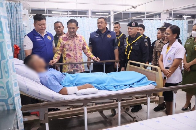 ทั้งนี้ ผู้ว่าราชการจังหวัดนราธิวาส พร้อมคณะ ได้พบปะพูดคุยให้กำลังใจ พร้อมสอบถามอาการและให้กำลังใจผู้ที่ได้รับบาดเจ็บ ด้วยความห่วงใย.