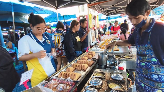 สงขลา-ขนมถังแตก ขนมโตเกียว ขนมเบื้องกรอบ และขนมเบื้องครีม เจ้าดังเมืองสงขลา ขายที่ตลาดนัดรถไฟวันอาทิตย์ ขายดิบขายดี ลูกค้าเพียบ ทำแทบไม่ทันขาย