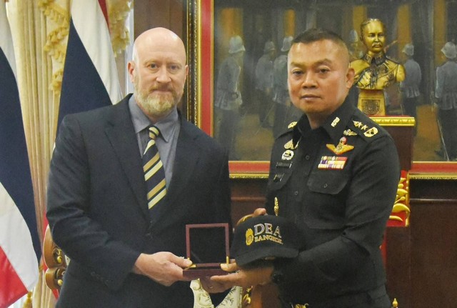 โดย อุปทูตด้านปราบปรามยาเสพติด สำนักงานปราบปรามยาเสพติดสหรัฐอเมริกา ประจำประเทศไทย ซึ่งมีหน้าที่ให้การสนับสนุนรัฐบาลไทย ในการต่อต้านยาเสพติดและสืบสวนเกี่ยวกับองค์กรค้ายาเสพติดที่ลักลอบขนสารควบคุมเข้าสหรัฐอเมริกา และตลาดโลก และ พร้อมที่จะประสานความร่วมมือในการปราบปรามและสกัดกั้นยาเสพติดกับ หน่วยบัญชาการสกัดกั้นและปราบปรามยาเสพติด สารตั้งต้น และเคมีภัณฑ์ชายแดนภาคตะวันออกเฉียงเหนือ (นบ.ยส.24)