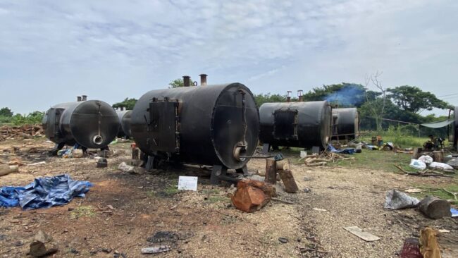 จากการลงพื้นที่ตรวจสอบของเจ้าหน้าที่ พบว่าสถานที่ดังกล่าว ได้ประกอบกิจการมาประมาณ 3 เดือน โดยได้มาเช่าที่ดินจำนวน 9 ไร่ของชาวบ้านแถวนั้น ประกอบกิจการ ริมถนนทางเข้ามีการติดป้ายรับซื้อไม้ฟืนเอาไว้ และด้านหน้ายังติดตั้งเครื่องชั่งน้ำหนัก..สำหรับชั่งน้ำหนักรถบรรทุกขนาดเล็ก โดยมีกองไม้ท่อนจำนวนมากที่รับซื้อไว้ กองไว้อยู่ลานด้านหลังของตาชั่ง ใกล้ๆกันยังพบเตาเผาถ่าน ทำด้วยเหล็กขนาดใหญ่จำนวน 13 ใบ ตั้งเรียงเป็นแถว และพบคนงานกำลังช่วยกันคัดถ่านที่เผาแล้วบรรจุใสกระสอบ และมีคนงานบางส่วน..กำลังช่วยกันนำฟืนท่อนใส่เข้าไปในเตาเพื่อเตรียมเผาถ่าน ซึ่งเตาบางลูกมีการจุดไฟเผาถ่านแล้วสังเกตุจากมีควันลอยออกมาจากปล่อง เตาแต่ละใบสามารถเผาถ่านได้ครั้งละประมาณ 50 กระสอบ