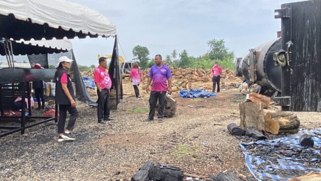 จากการลงพื้นที่ตรวจสอบของเจ้าหน้าที่ พบว่าสถานที่ดังกล่าว ได้ประกอบกิจการมาประมาณ 3 เดือน โดยได้มาเช่าที่ดินจำนวน 9 ไร่ของชาวบ้านแถวนั้น ประกอบกิจการ ริมถนนทางเข้ามีการติดป้ายรับซื้อไม้ฟืนเอาไว้ และด้านหน้ายังติดตั้งเครื่องชั่งน้ำหนัก..สำหรับชั่งน้ำหนักรถบรรทุกขนาดเล็ก โดยมีกองไม้ท่อนจำนวนมากที่รับซื้อไว้ กองไว้อยู่ลานด้านหลังของตาชั่ง ใกล้ๆกันยังพบเตาเผาถ่าน ทำด้วยเหล็กขนาดใหญ่จำนวน 13 ใบ ตั้งเรียงเป็นแถว และพบคนงานกำลังช่วยกันคัดถ่านที่เผาแล้วบรรจุใสกระสอบ และมีคนงานบางส่วน..กำลังช่วยกันนำฟืนท่อนใส่เข้าไปในเตาเพื่อเตรียมเผาถ่าน ซึ่งเตาบางลูกมีการจุดไฟเผาถ่านแล้วสังเกตุจากมีควันลอยออกมาจากปล่อง เตาแต่ละใบสามารถเผาถ่านได้ครั้งละประมาณ 50 กระสอบ