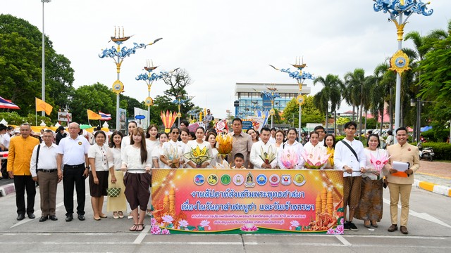 ชลบุรีเปิดงานสัปดาห์ส่งเสริมพระพุทธศาสนาเนื่องในวันอาสาฬหบูชาและวันเข้าพรรษา ด้วยขบวนแห่เทียนพรรษาที่สวยงามพร้อมขบวนแห่อัตลักษณ์ควายเทียมเกวียน