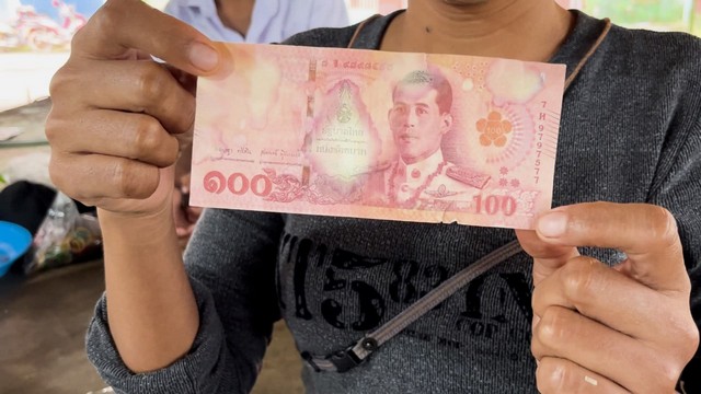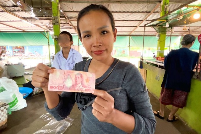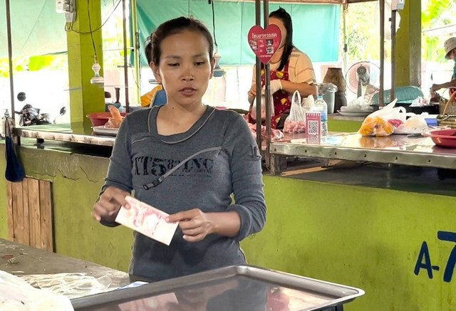 มุกดาหาร -เตือนภัย! แม่ค้าตลาดชุมชนมุกดาหารเจอแบงก์ปลอม 100 บาท หยดน้ำสีหลุดติดมือ