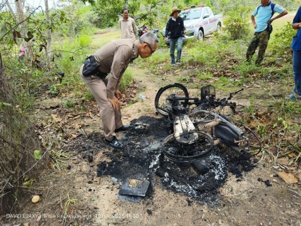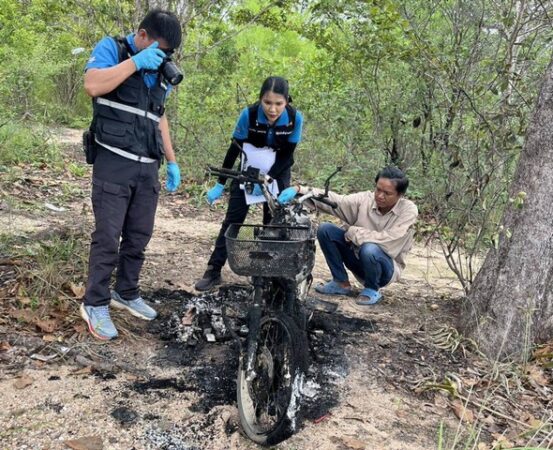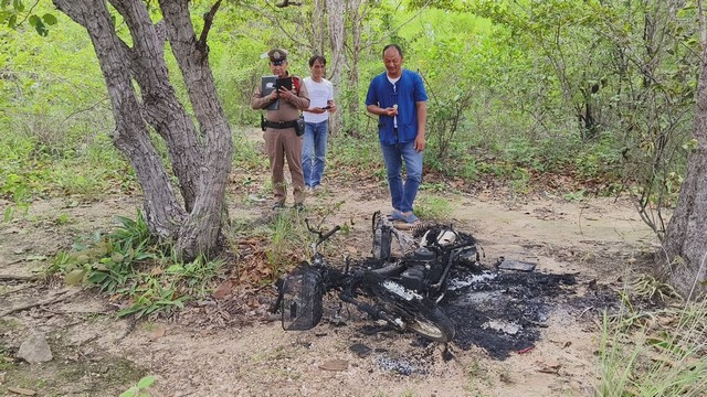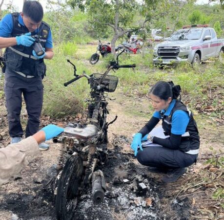 เมื่อเวลาประมาณ 10.00 น. วันที่ 10 กรกฎาคม 2568 พ.ต.ท.กิตติวัฒน์ คนหาญ สารวัตรสอบสวน สภ.เมืองมุกดาหาร ได้รับแจ้งเหตุรถจักรยานยนต์ถูกไฟไหม้ทั้งคันบริเวณป่าภูหินขัน ใกล้วัดป่าภูหินขัน ใกล้กับสถานีส่งสัญญาณโทรทัศน์ช่อง 9 บ้านโค้งสำราญ ตำบลคำอาฮวน อำเภอเมือง จังหวัดมุกดาหาร