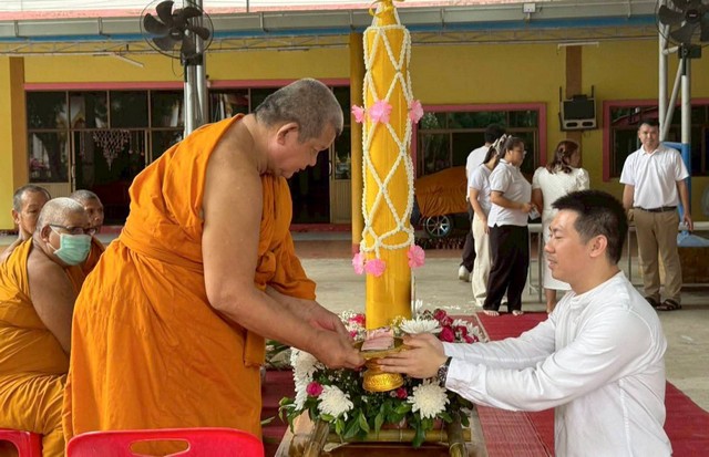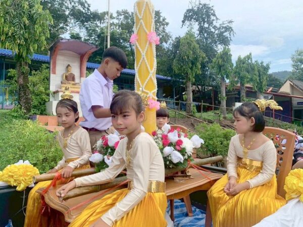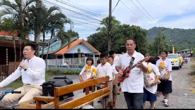นครนายก – สีสันผอ.รร.หัวเขาแก้วขี่รถจักรยานยนต์พ่วงข้างนำขบวนแห่เทียนพรรษา