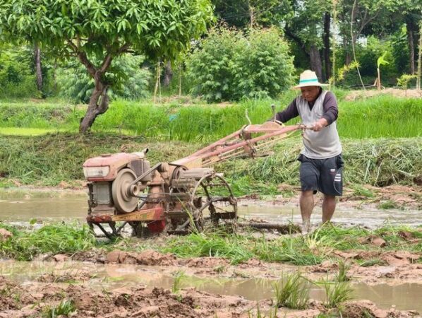 กาฬสินธุ์-วัดพระธาตุหมื่นหินร่วมตำรวจสภ.เขาวง ฝ่ายปกครอง ลงแขกปักดำนาสืบสานประเพณีวิถีชีวิตชาวนาไทย