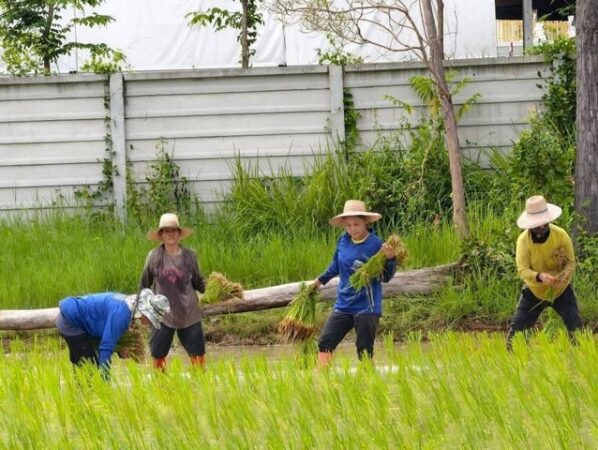 ที่แปลงนาภายในวัดพระธาตุหมื่นหิน อ.เขาวง จ.กาฬสินธุ์ พ.ต.อ. สมชาย ภูกองชนะ ผกก.สภ.เขาวง นำข้าราชการตำรวจในสังกัด พร้อมด้วยครอบครัวตำรวจ สภ.เขาวง ร่วมกับนายสิทธิโชค ศรีเจริญ นายอำเภอเขาวง พร้อมด้วยปลัดอำเภอ เจ้าหน้าที่ฝ่ายปกครอง เจ้าหน้าที่กู้ภัยหมื่นหิน (มูลนิธิหลวงปู่ศิลา สิริจันโท) กำนัน ผู้ใหญ่บ้าน และประชาชนในพื้นที่ร่วมกันลงแขกปักดำนาข้าวเหนียวเขาวง