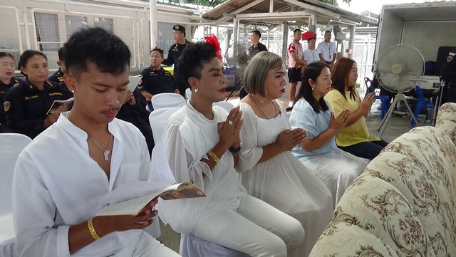 อ่างทอง หลวงพี่น้ำฝนนำผู้ต้องขังสวดเจริญพระพุทธมนต์เฉลิมพระเกียรติ