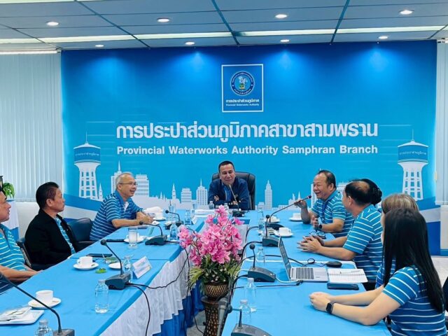 วันที่ 18 กรกฎาคม 2568 การประปาส่วนภูมิภาค (กปภ.) สาขาสามพราน นำโดย นายหาญณรงค์ เสือสมิง ผู้จัดการ กปภ.สาขาสามพราน พร้อมด้วย นางสาวสิริพร กิจวิจารณ์ ผู้ช่วยผู้จัดการ หัวหน้างาน และพนักงานในสังกัด ให้การต้อนรับ พลอากาศตรี นิพนธ์ โพธิ์เจริญ คณะกรรมการบอร์ดการประปาส่วนภูมิภาค นายศรายุธ แก้วสินธุ์ รองผู้ว่าการ (ปฏิบัติการ 4) และคณะ ในโอกาสเดินทางมาตรวจเยี่ยมและติดตามผลการดำเนินงานของ กปภ.สาขาสามพราน