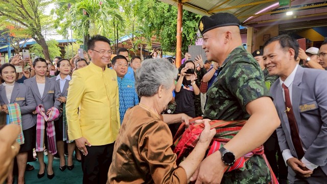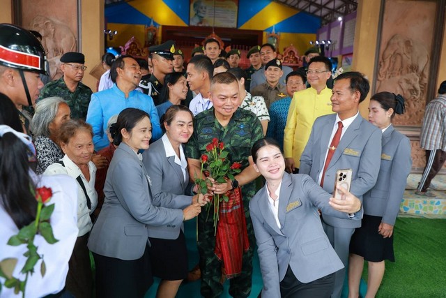 (สุรินทร์)แม่ทัพภาคที่ 2 บินฮอล์ลง ร.ร.สินรินทร์วิทยา ให้โอวาทเด็กนักเรียน ถ่ายรูปมอบดอกไม้ให้กำลังใจอบอุ่น