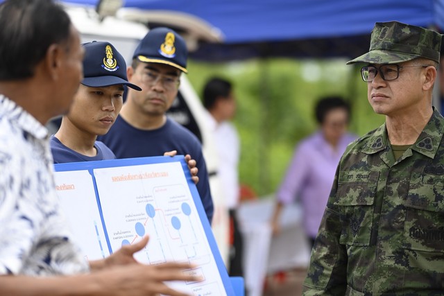 ในการนี้ พลเรือโท อาภา ชพานนท์ ผู้บัญชาการทัพเรือภาคที่ 1 ในฐานะผู้อำนวยการศูนย์บรรเทาสาธารณภัยทัพเรือภาคที่ 1 ได้เดินทางไปตรวจเยี่ยมการปฏิบัติงานในพื้นที่ เพื่อเป็นขวัญและกำลังใจแก่เจ้าหน้าที่ทุกนายที่ปฏิบัติภารกิจด้วยความเสียสละและมุ่งมั่นในการช่วยเหลือประชาชนอย่างเต็มที่ ได้ย้ำถึงการดำเนินการในครั้งนี้มีวัตถุประสงค์เพื่อเปิดทางน้ำให้ไหลเวียนได้สะดวกและมีประสิทธิภาพ โดยเป็นการแก้ปัญหาที่ต้นตอ อันเป็นหนึ่งในนโยบายที่ผู้บัญชาการทหารเรือมอบไว้ พร้อมทั้งได้แลกเปลี่ยนับรองประธาน มูลนิธิสว่างพรกุศลระยอง นายกเทศมนตรีตำบลทับมา รองนายกเทศมนตรีตำบลทับมา กำนันตำบลทับมา ละผู้ใหญ่บ้านตำบลทับมา ซึ่งได้มาให้การต้อนรับและอำนวยความสะดวกในกิจกรรมครั้งนี้