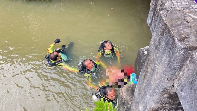 เจ้าหน้ากู้ภัย และนักประดาน้ำมาถึงที่เกิดเหตุ พบว่าผู้สูญหายเป็นชายไม่สวมเสื้อ จมหายไปในน้ำ เจ้าหน้าที่ชุดประดาน้ำ นำโดยนายวิโรจน์ ภักดิ์สวาท หัวหน้านักประดาน้ำ และทีมชุดประดาน้ำ ใช้เวลาดำน้ำค้นหาประมาณ 1 ชั่วโมง ก่อนพบร่างผู้เสียชีวิตและนำขึ้นจากน้ำได้ในเวลาต่อมา โดยมีทาง ร้อยตำรวจโทมารุต นิตย์จินด์ พนักงานสอบสวนเวร พร้อมแพทย์เวรเข้าตรวจสอบที่เกิดเหตุ