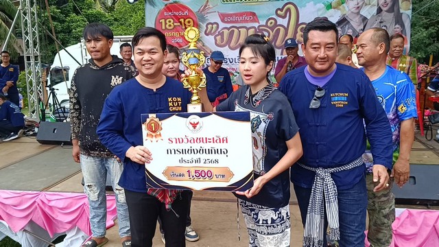 มีกองเชียร์มาจากหมู่บ้านต่างๆของแต่ละคน มาคอยให้กำลังใจกันอย่างคึกคัก ถึงแม้อากาศที่ร้อนอบอ้าวก็ตาม นับว่ามีสีสันสร้างความสนุกสนานคึกคักเป็นพิเศษ ผู้เข้าร่วมแข่งขันกินจุก๋วยเตี๋ยวลูกชิ้นกุดชุม 5 คน จะเห็นได้ว่า 1 ในนั้นเป็น นส.จงจิตร อยู่ไพร เป็นนักล่ารางวัลเคยได้แชมป์มาหลายแห่ง ล่าสุดได้ไปแข่งกินจุที่เวียดนามมาอาหาร 6 ก.ก ตัวเล็กแต่สร้างความมึนงงแก่ผู้ที่ร่วมงาน เพราะไม่นึกว่าจะกินได้เก่ง กินได้ไว ไม่สะทกสะท้านในการกินแต่อย่างไร สามารถทำลายสถิติ อาหารในหม้อ 3 ก.ก โดยไม่เหลือและหมดก่อนเวลาส่วนผู้เข้าแข่งขันที่เหลือ 4 คน แต่ละคนอาหารเหลือ 1-2 กิโลกรัม