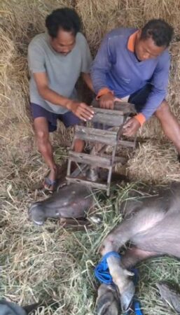 สอบถามหน่วยกู้ภัยทราบว่าเป็นการช่วยเหลือควายที่ ต.โคกขมิ้น อ.พลับพลาชัย เมื่อวันที่ 20 ก.ค.ที่ผ่านมา ผู้สื่อข่าวเดินทางไปตรวจสอบ พบว่าควายตัวดังกล่าวเป็นควายเพศเมียอายุ 2 ปีชื่อเจ้า”สมหวัง”สภาพปลอดภัยดี
